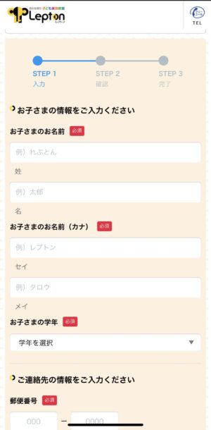 ③お子さまの名前や学年、住所、メールアドレスなどを入力します。