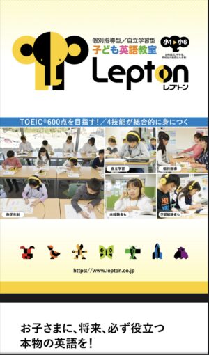 英語教室Leptonは、小学生から中学生向けに4技能(読む・書く・聞く・話す)をバランスよく学べる英語教室です。