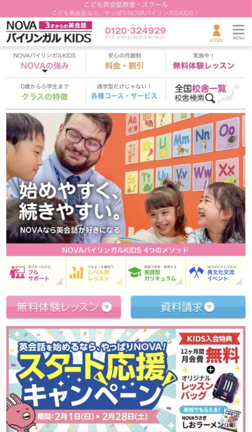 ①3歳からのこども英会話 NOVAバイリンガルKIDSにアクセスをする
